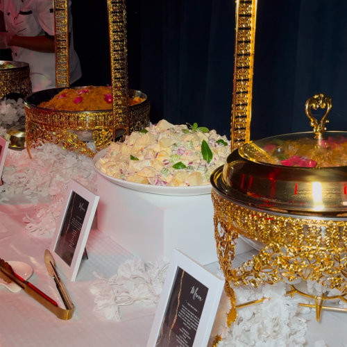 - Service Options: Buffet, plated meals, canapés, live food stations.