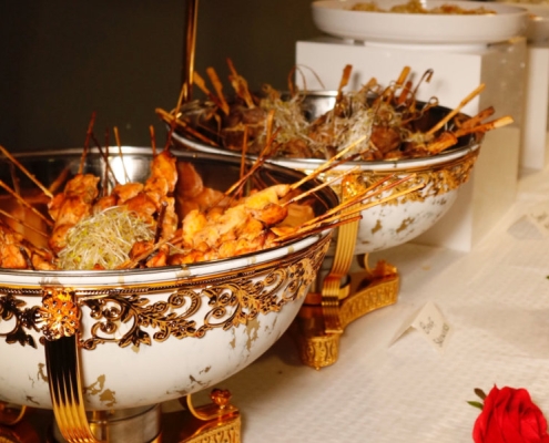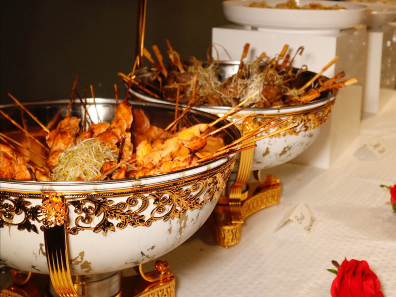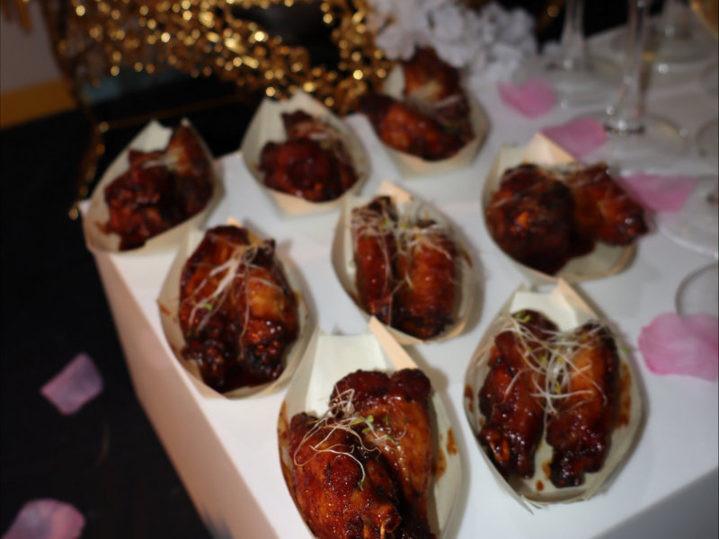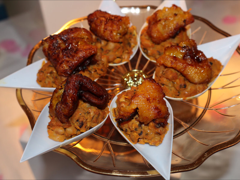 Boneless chunks of slow-cooked goat in pepper sauce, served in tasting spoons or on toothpicks.