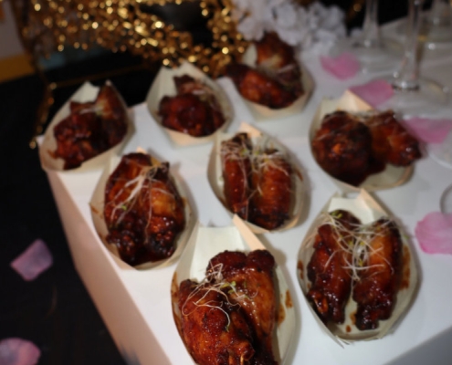Grilled chicken, crisp lettuce, shaved parmesan, and Caesar dressing in mini lettuce cups or pastry shells.