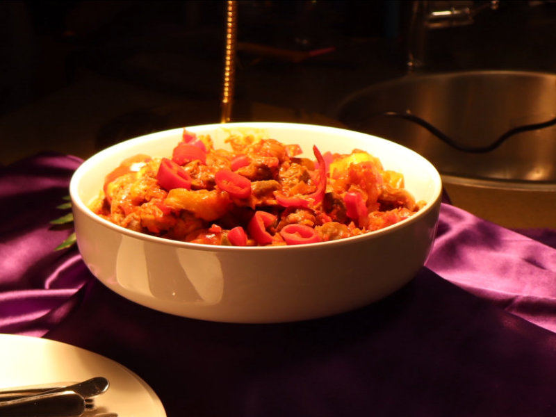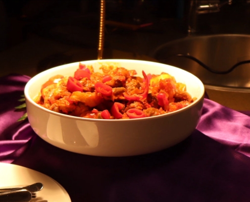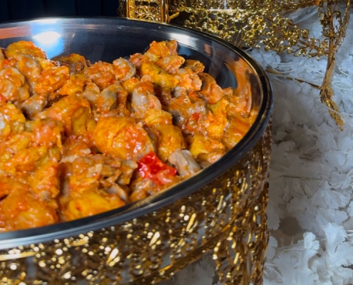 A royal spicy goat stew simmered with tomatoes, herbs, and love.