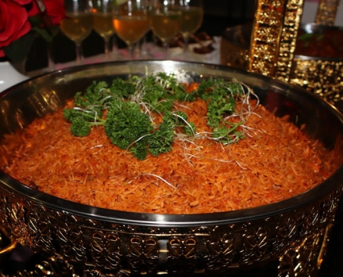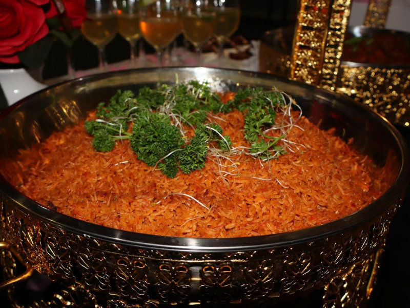 Iconic West African rice dish cooked in a spicy tomato blend.